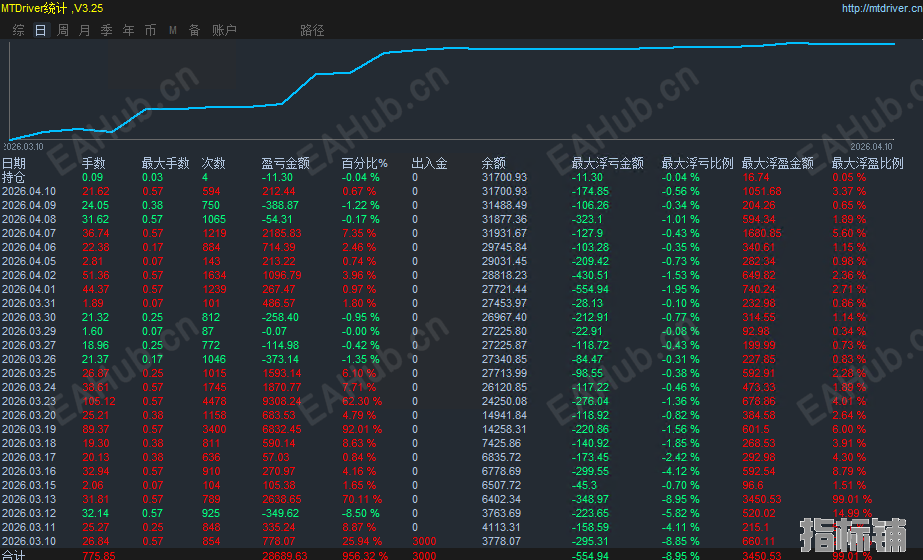 索赔-EA不会增加交易量来阻止无利可图的头寸。分析-交易日志证实了这一说法。在整个测试期间,批量保持一致(例如,0.01批次)跨连续交易。没有证据表明通常与网格或鞅系统相关的几何级数(0.01,0.02,0.04)。这表明固定批次或者基于风险的管理系统,对于小账户来说要安全得多。